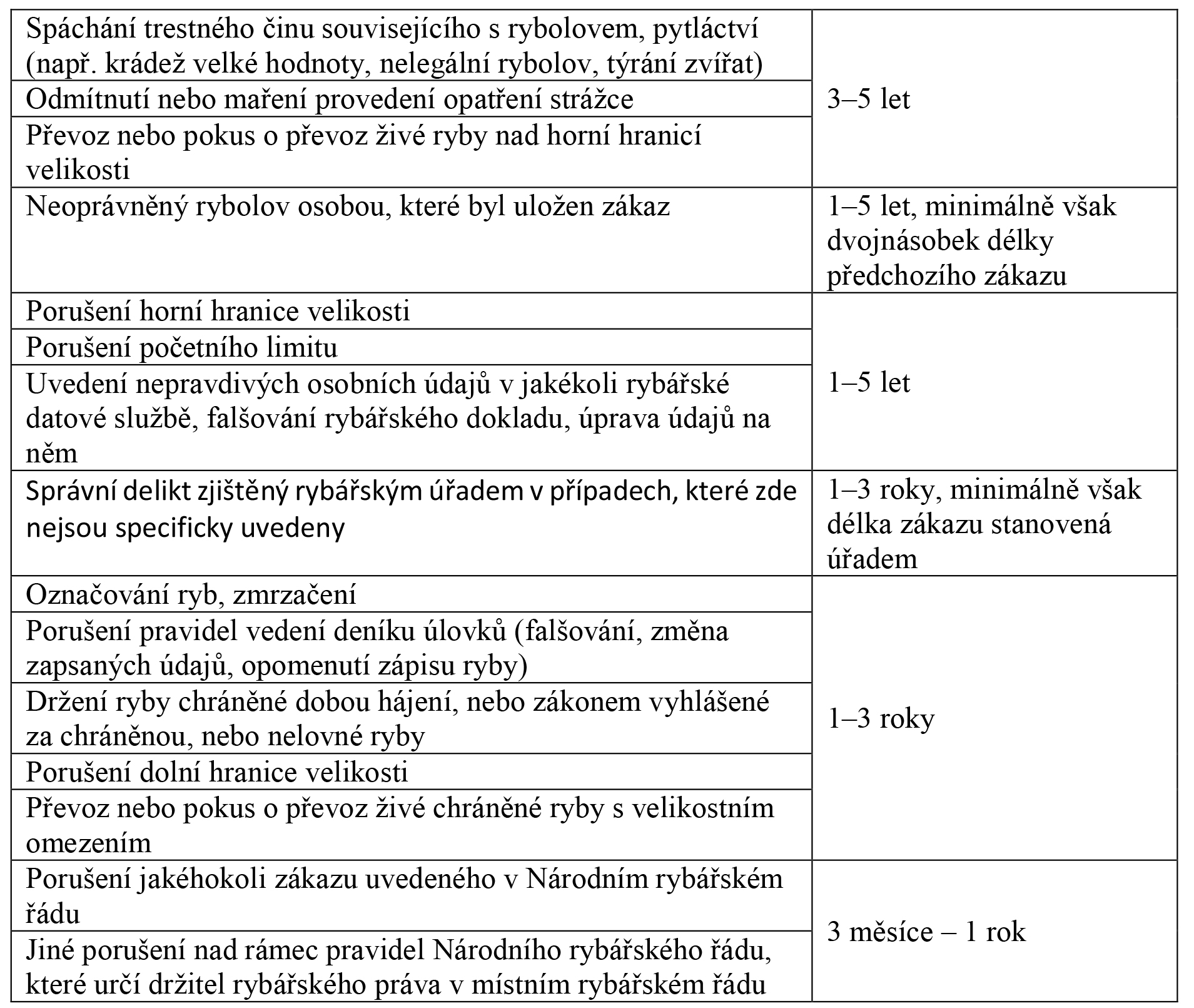 89. Pokud rybář spáchá další porušení do 3 let od předchozího zákazu, činí míra zákazu minimálně 2 roky, maximálně 5 let.
