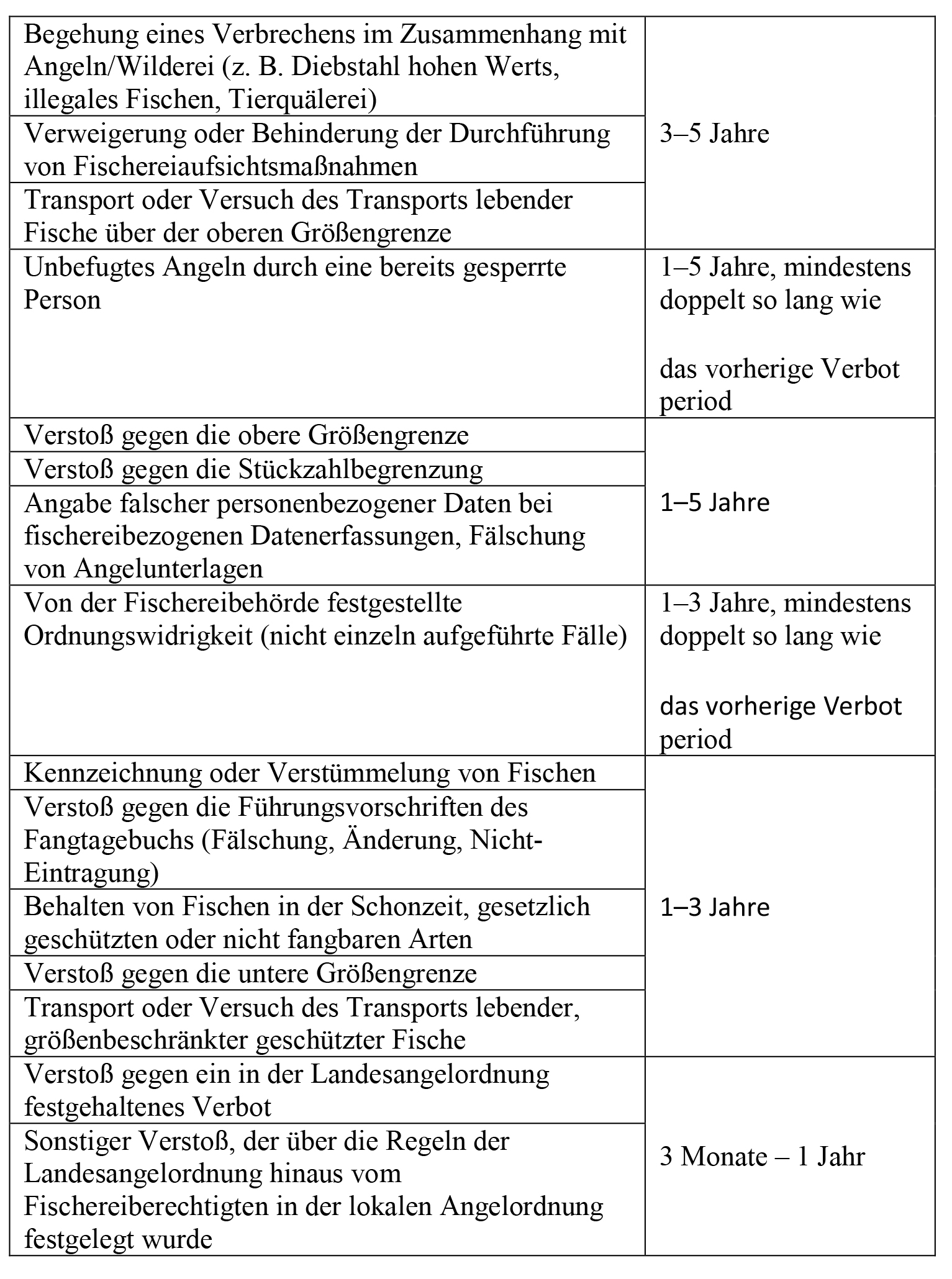 86. Bei mehreren selbstständigen Verstößen an einem Angeltag werden die jeweiligen Verbotszeiten addiert, jedoch maximal 5 Jahre.