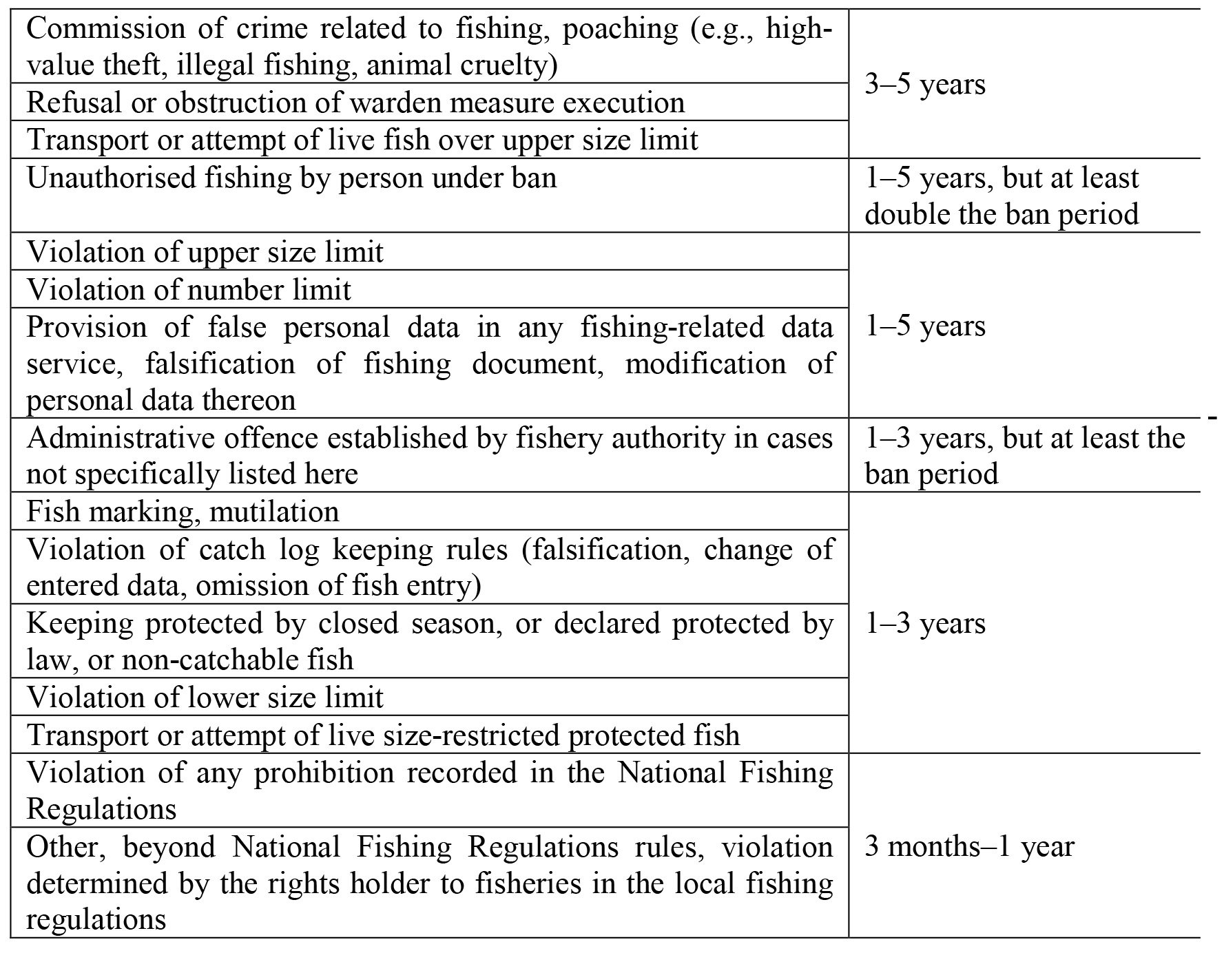 86. In case of multiple independent violations during one fishing occasion, the ban periods applicable to the actions are added, but the ban maximum is 5 years.
